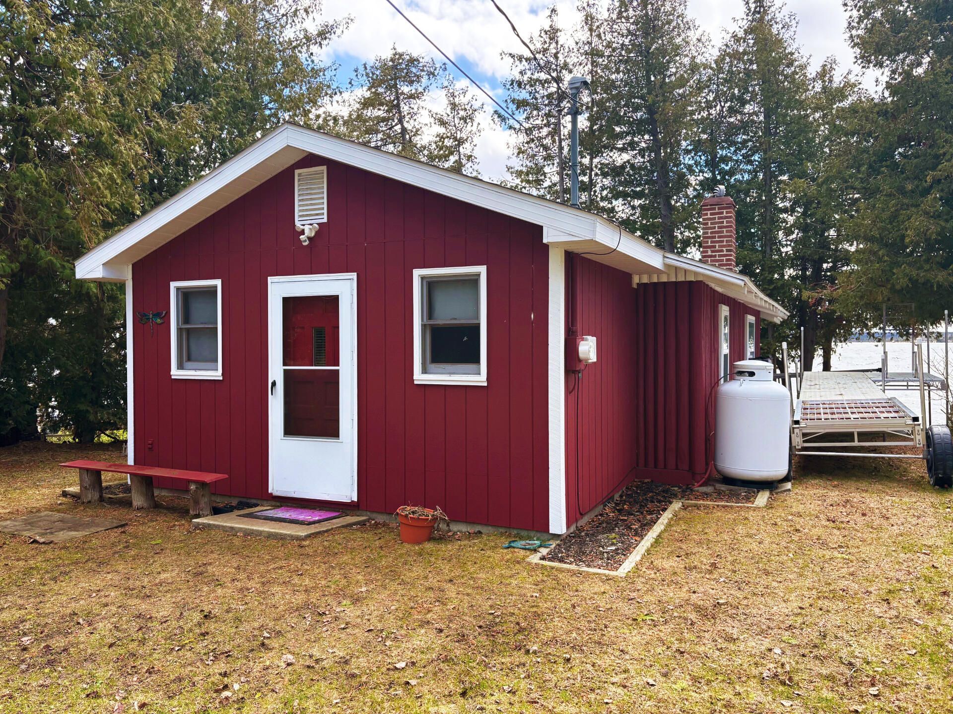Rustic 2 Bed, 1 Bath cottage with 750 sq. ft. of living space and 50 of pristine frontage on scenic Grand Lake! Charming open floor plan with living room, kitchen & dining areas perfect for entertaining, propane stove and A/C unit, lakeside 3 season sunroom with wall of windows, 2 bedrooms with log paneling and built ins, spacious 3/4 bath, mudroom/entrance, and storage shed for all your toys and yard tools. Cottage comes furnished along with dock, hoist, 20 Playbuoy pontoon with 40hp motor, everything you need to enjoy your time on the lake! Property also includes lot 62 North Bay Court in the Presque Isle Harbor Association with access to 2 beach houses, campers village, crystal point recreation area, and clubhouse with gymnasium, fitness room, tennis courts and new pool coming soon.